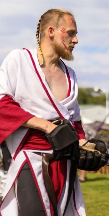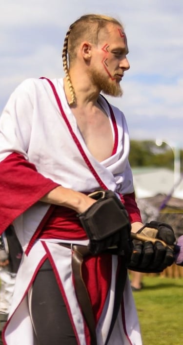 Leader, warrior, Dominus, foam weapon and leather smith, fire breather and king